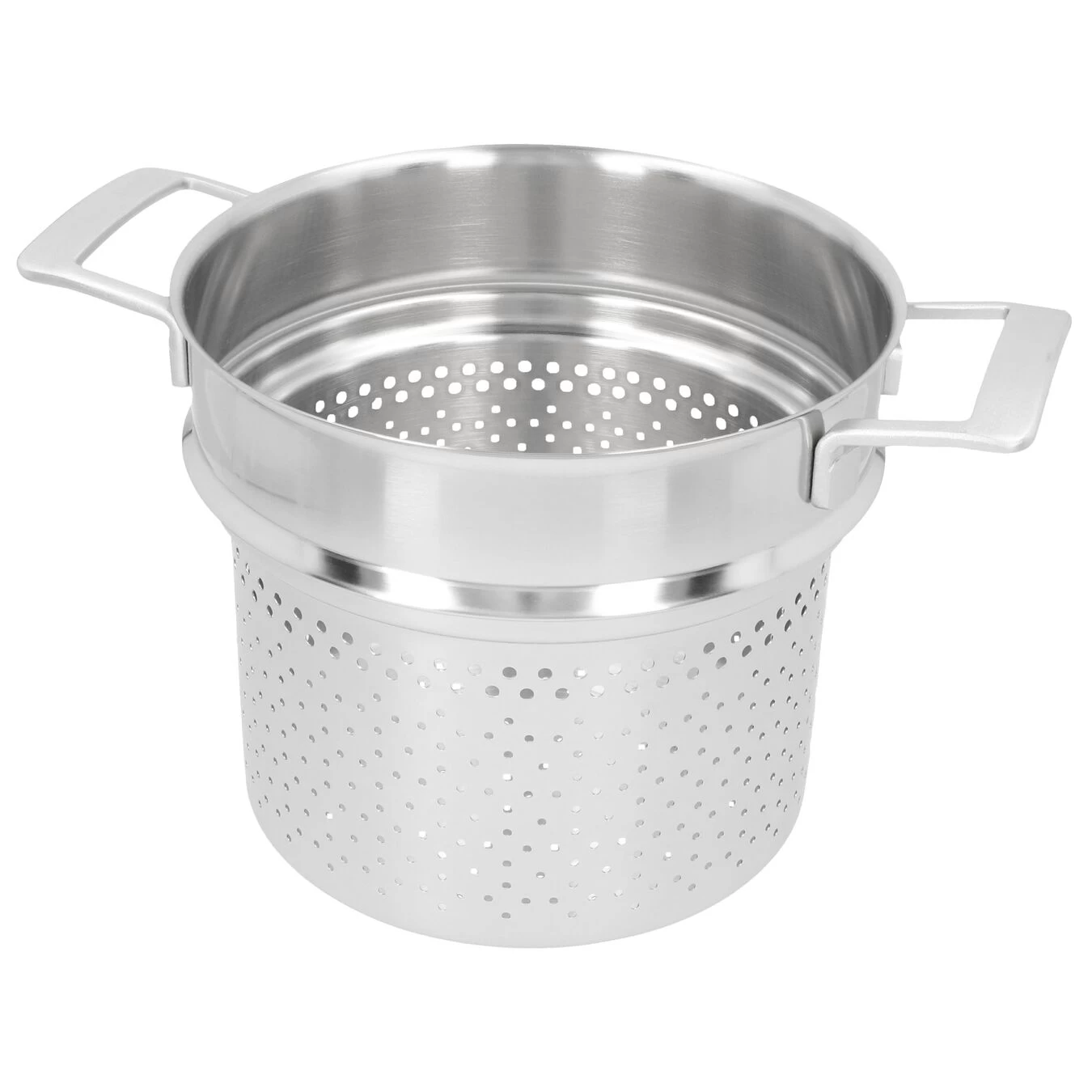 Mit dem formschönen und stabilen Pastaeinsatz aus der Serie Industry gelingt es Ihnen leicht, Pasta fachgerecht zuzubereiten. Durch die massive Formgebung bleiben die Edelstahlgriffe kalt. Der Nudeleinsatz mit einem Durchmesser von 24 cm besteht aus 18/10-Edelstahl und passt in Kochtöpfe mit dem selben Durchmesser. Der Einsatz eignet sich nicht nur für die Zubereitung von Nudeln, sondern auch, um Gemüse aller Art schonend zu blanchieren. Der hochwertige Pastaeinsatz von Demeyere wird Ihnen das Zubereiten Ihrer Speisen erleichtern.