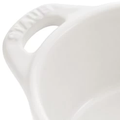 Mit der runden Auflaufform der Serie Staub Geschirr fällt die Zubereitung von Aufläufen, Gratins und weiteren Ofengerichten besonders leicht. Ein großer Vorteil des Kochgeschirrs aus Gusseisen sind dessen wärmespeichernden Eigenschaften: Es gibt die aufgenommene Wärme langsam und gleichmäßig an das Gargut ab. So werden die Zutaten schonend gegart und behalten wichtige Nährstoffe. Das hochwertige und robuste Material sorgt beim Überbacken oder Gratinieren für eine gleichmäßige, goldbraune Kruste. Die praktische Form mit den breiten Griffen hat einen Durchmesser von 16 cm und eine Gesamthöhe von 5 cm. Mit ihrem Fassungsvermögen von 0,4 l lassen sich darin vor allem kleinere Mengen zubereiten. Zusätzlich ist sie für alle Herdarten, einschließlich Induktion, geeignet und kann im Ofen verwendet werden. Ein weiter Vorteil ist die Stapelbarkeit der Auflaufform mit den weiteren Größen der gleichen Kollektion. Die schwarze Auflaufform von Staub, die auch bei international anerkannten Köchen gefragt ist, hilft Ihnen bei der Zubereitung schmackhafter und gesunder Gerichte.