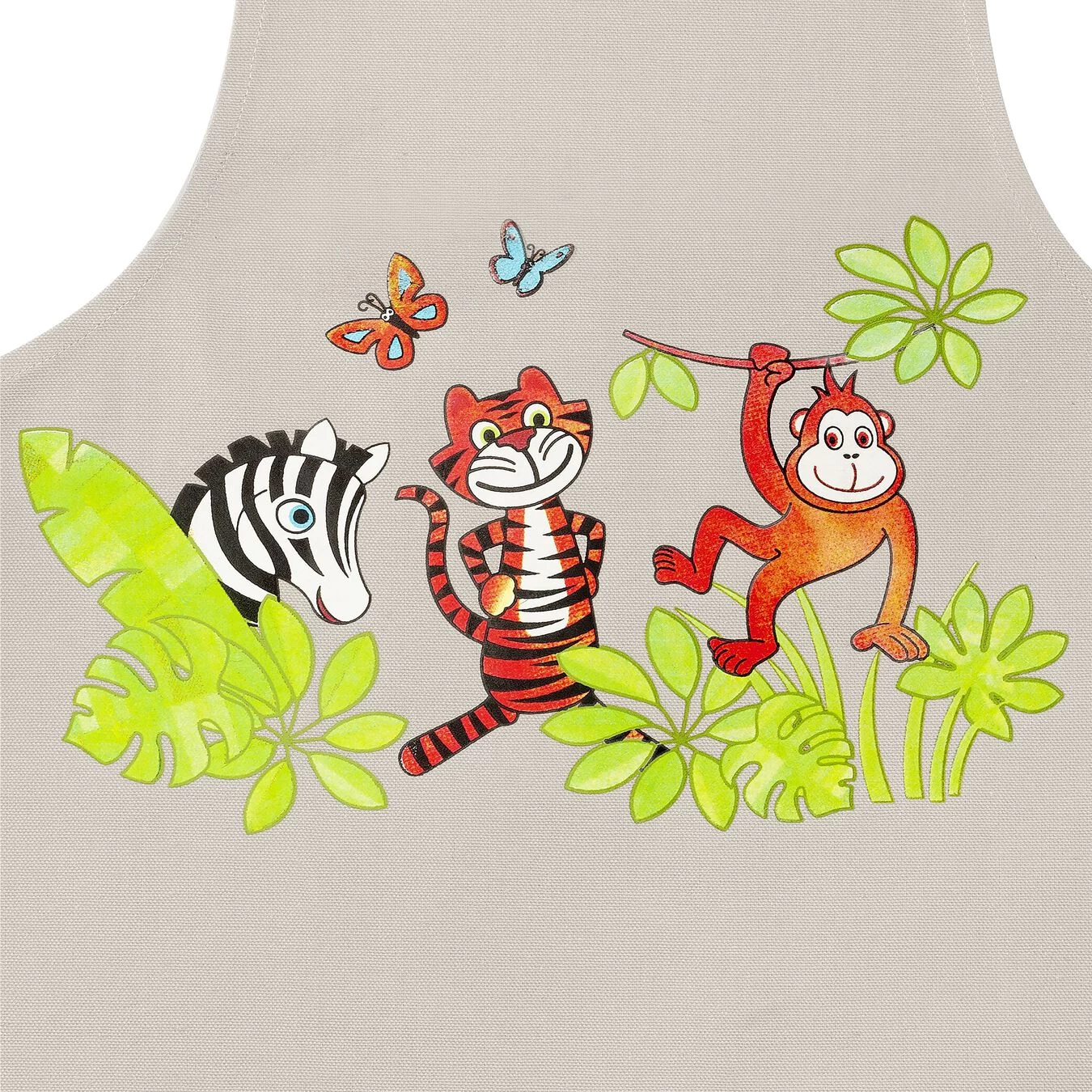 Sie verzaubert mit einem kindgerechten, verspielten Tier Motiv auf der Brust und überzeugt durch höchste Funktionalität. Die Kochschürze ist wie all unsere Küchentextilien aus Baumwolle. Für eine ideale Passform sorgen die seitlichen Bänder mit denen die Küchenschürze hinten zusammengebunden wird sowie die verstellbaren Bindebänder. So passt die Schürze kleinen und großen Kindern und es darf nach Herzenslust gekleckert werden. Schließlich sollen sich die Nachwuchs Köche ja voll und ganz auf das Kochen konzentrieren.